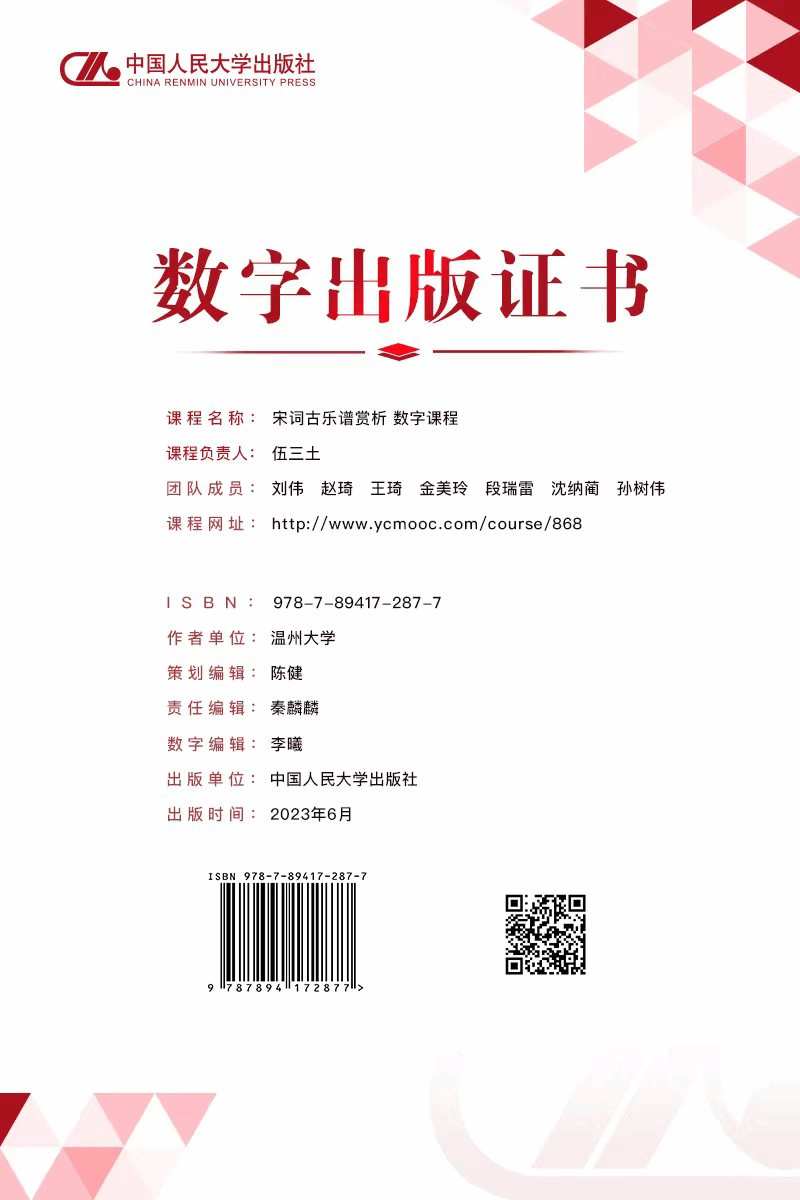 我院精品课程《宋词古乐谱赏析》由中国人民大学出版社数字出版,近日正式上线,实现了我院数字出版形式的突破。